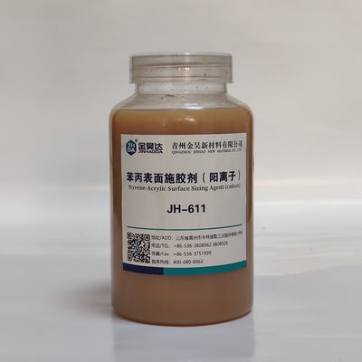 JH-611 là một loại nhũ kim acrylic styrene cationic hiệu quả được đồng-polymerized bởi styrene, acrylate & các loại polyme thông qua quy trình sản xuất đặc biệt.Nó có thể được phù hợp hiệu quả với tinh bột và để lớp tinh bột hoạt động tốt hơn trong sức mạnh liên kết chéo và hydrophobicity.Mức liều thấp hơn, chi phí thấp hơn, hiệu ứng kích thước bề mặt tốt hơn và tiện lợi là các đặc điểm chính của JH-611. Nó được sử dụng rộng rãi trong sản xuất giấy lợp, giấy mỏng, giấy whiteboard,giấy thủ công vv